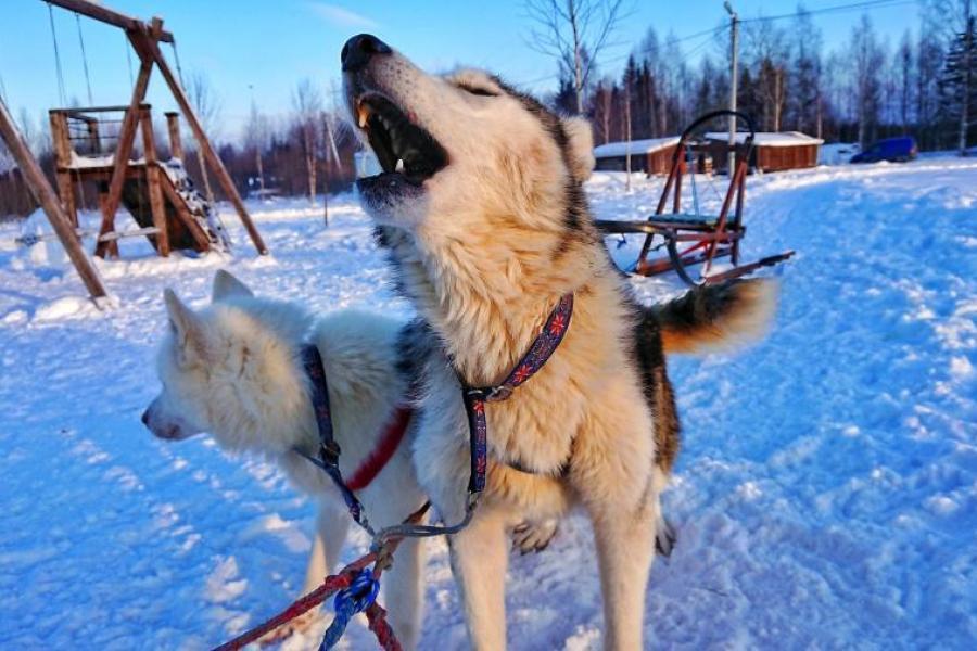 -В собачьем питомнике нас не только познакомят с местными обитателями – сибирские хаски, самоеды, маламуты, но и с ветерком прокатят на нартах, запряженными собаками! Катание на собачьих упряжках – 1 круг (≈400 метров) в качестве пассажира нарт или каюра – на Ваш выбор.