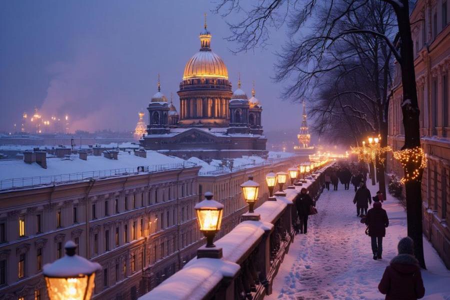 За несколько часов до Нового года Санкт-Петербург превращается в настоящую зимнюю сказку. Город окутан мягким светом гирлянд, а его улицы и площади наполнены атмосферой праздника. Путь лежит к Исаакиевскому собору, чьи золотые купола сверкают на фоне зимнего неба. Это место словно создано для того, чтобы загадать желание в преддверии Нового года. На Невском проспекте вас ждёт атмосфера уюта и праздника. Уличные представления, ароматы горячих напитков и праздничные угощения создают особое настроение. Здесь можно насладиться прогулкой и почувствовать себя частью новогодней сказки. Побываем и на Поцелуевом мосту, где по традиции загадывают желания. Экскурсия завершится прогулкой по Дворцовой площади, где возвышается величественный Зимний дворец и сияет главная ёлка города. Здесь можно почувствовать дух праздника и сделать незабываемые фотографии. Это место станет идеальным финалом вашего путешествия по зимнему Санкт-Петербургу. Такая экскурсия подарит вам не только яркие впечатления, но и ощущение настоящего праздника, которое останется с вами надолго.